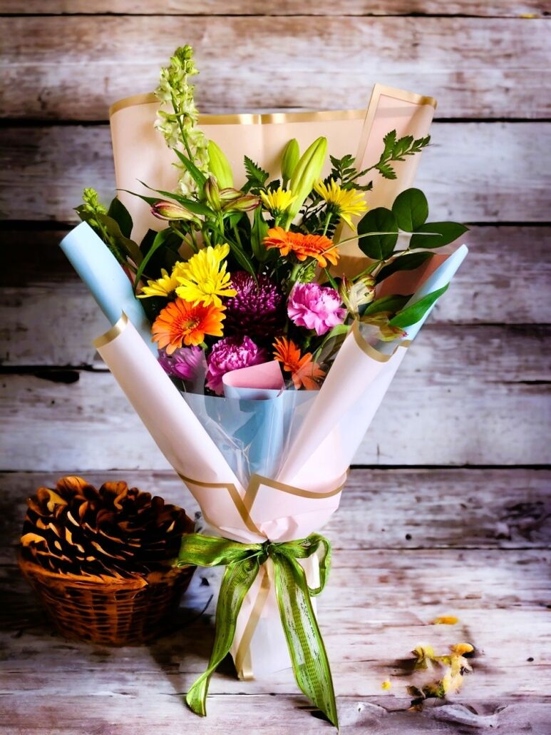 A small and elegant bunch gives the impression that quite some effort has been made to choose them without making the recipient feel awkward. For instance, a small arrangement of white lilies or a combination of pastel roses and greenery can exude elegance and charm without being too flashy.