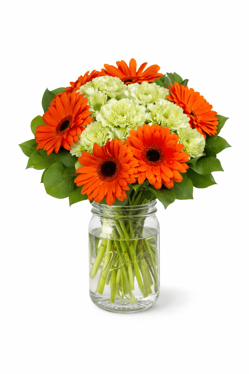 - Lush Greenery & Elegant Wrapping: Complementing the flowers, the bouquet is enhanced with fresh greens that symbolize renewal and growth. A clear mason jar, the presentation adds a touch of elegance, making the bouquet even more delightful.