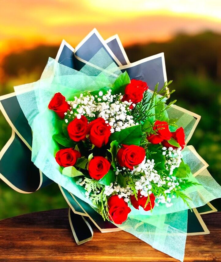 - Beautiful Wrapping & Presentation: Wrapped in soft and elegant tissue paper, the bouquet is hand-tied, adding a touch of sophistication and ensuring the flowers are beautifully arranged. The classic red color and natural fillers create a presentation that is both graceful and inviting.